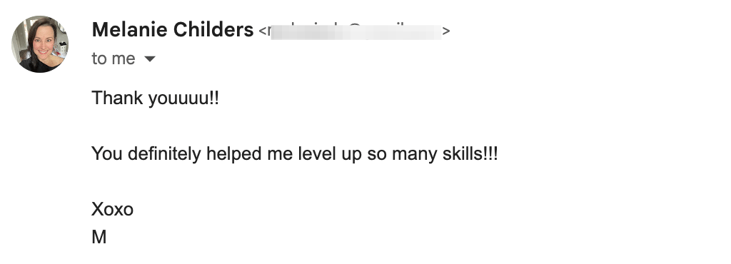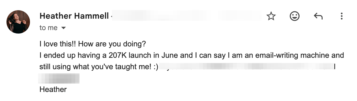 By the end of the program, they’ve still created epic launch email sequences and sales pages, and achieved the all-important internal shifts (like no longer having that ‘drag yourself to the desk’ feeling when it’s time to write for their business).