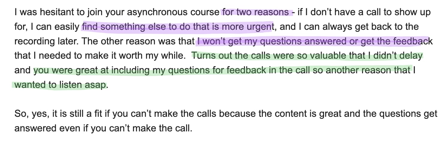 Here’s what one person shared when I asked what she was hesitant about re: knowing she wouldn’t make the live calls AND what she found her experience to be like once inside: