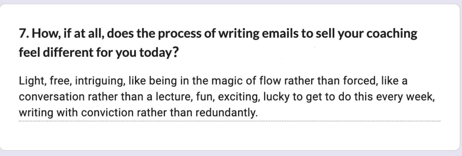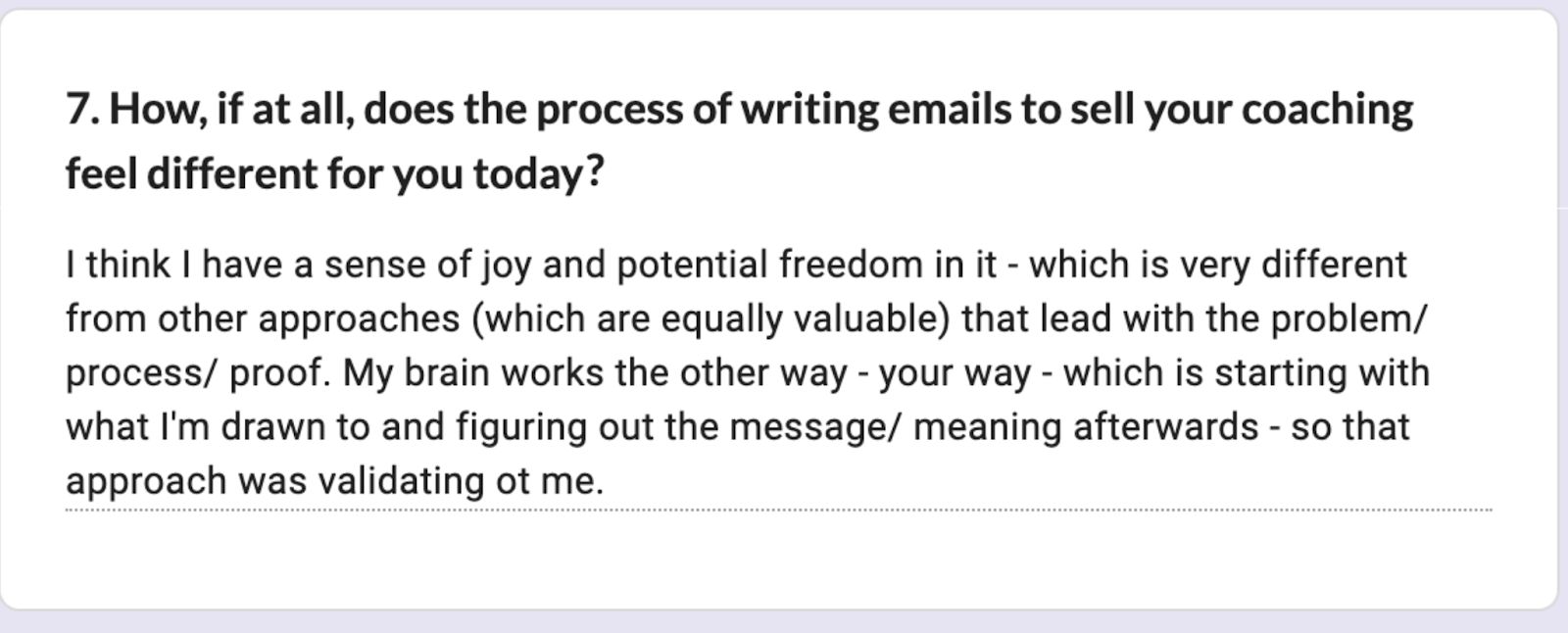Which means you’ve internalised some helpful, but mostly a heap of un-helpful beliefs around ‘selling’ and ‘emailing your list’ and ‘how you should sound’.